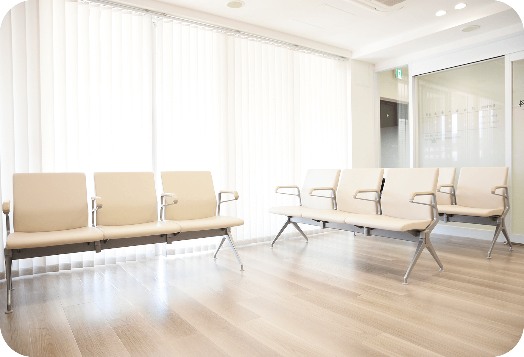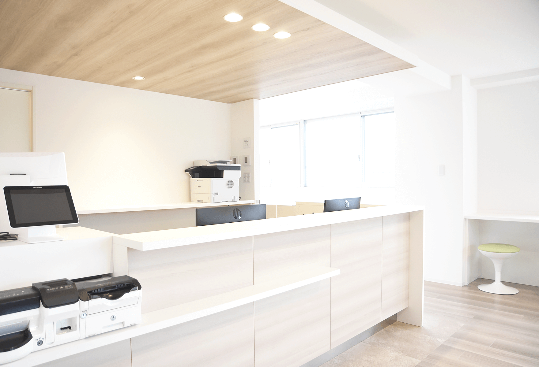 白とベージュを基調にした柔らかい雰囲気の院内です。リラックスしてお過ごしください。