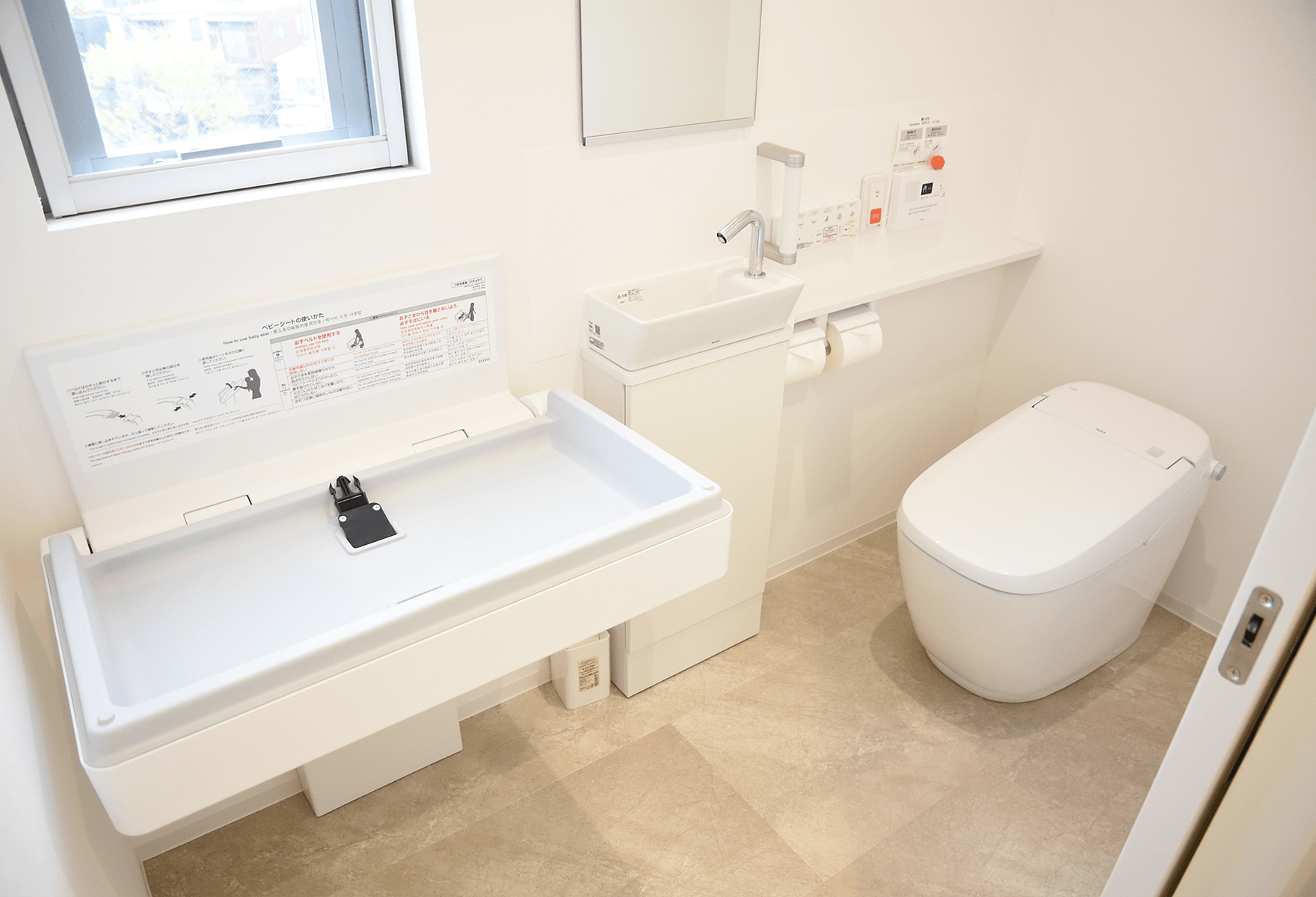 おむつ交換台を設置した多目的トイレですので、どなたにも気軽にご利用いただけます。